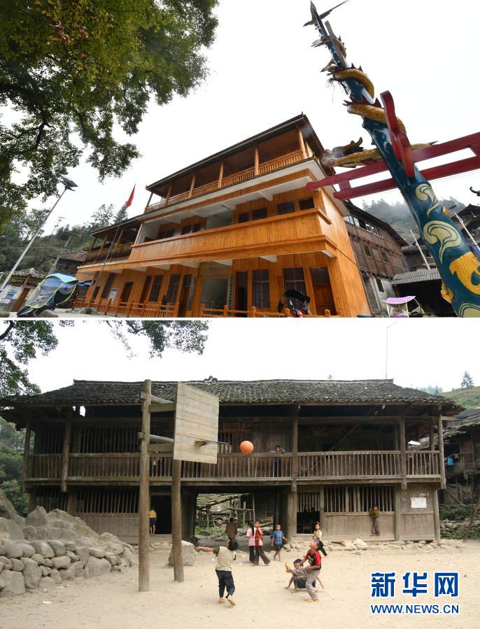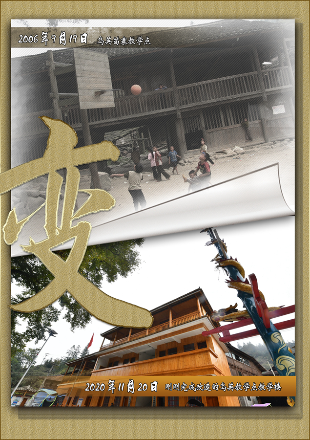 這是一張拼版照片,上圖為:2020年11月20日拍攝的完成改造的烏英教學(xué)點(diǎn)教學(xué)樓(新華社記者黃孝邦攝);下圖為:2006年9月19日拍攝的烏英教學(xué)點(diǎn)(龍濤攝)。新華社發(fā)