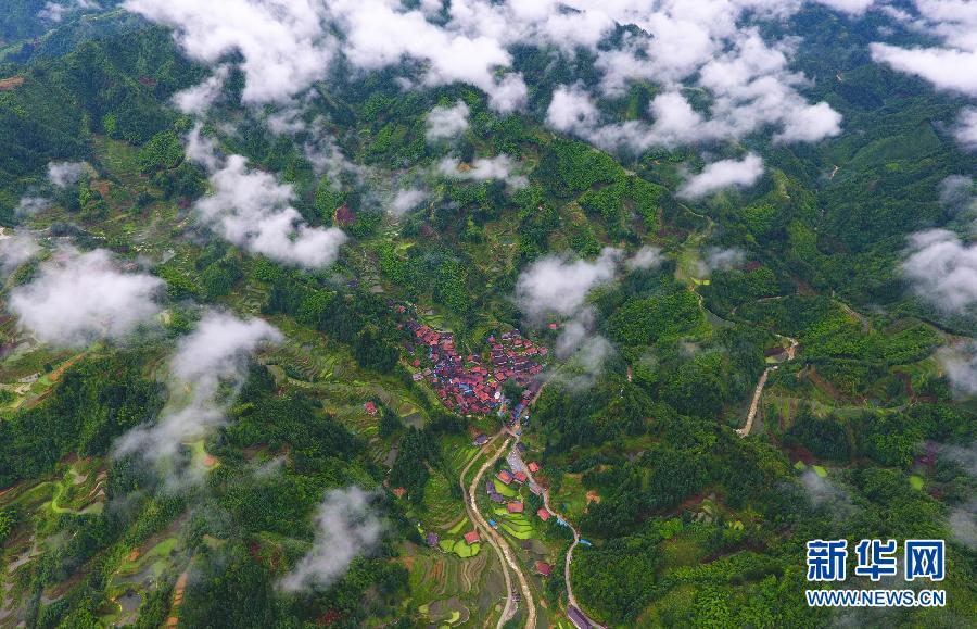 這是烏英苗寨全景(6月7日攝,無人機(jī)照片)。新華社記者 黃孝邦 攝