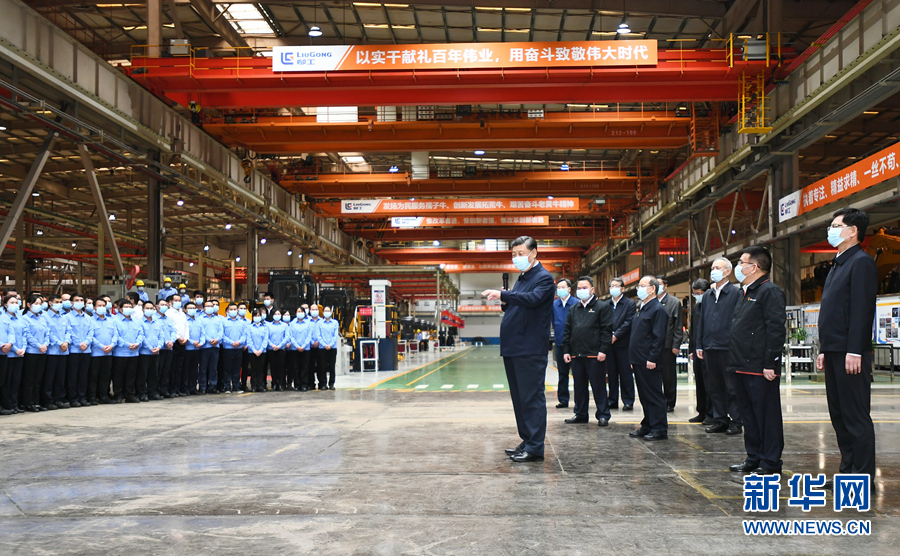 當(dāng)天下午,習(xí)近平來(lái)到柳州市考察調(diào)研。在廣西柳工集團(tuán)有限公司,習(xí)近平先后走進(jìn)公司展廳、研發(fā)實(shí)驗(yàn)中心、挖掘機(jī)裝配廠等,聽(tīng)取企業(yè)發(fā)展情況介紹,察看主要產(chǎn)品展示,同企業(yè)職工和技術(shù)研發(fā)人員親切交談。習(xí)近平強(qiáng)調(diào),制造業(yè)高質(zhì)量發(fā)展是我國(guó)經(jīng)濟(jì)高質(zhì)量發(fā)展的重中之重,建設(shè)社會(huì)主義現(xiàn)代化強(qiáng)國(guó)、發(fā)展壯大實(shí)體經(jīng)濟(jì),都離不開(kāi)制造業(yè),要在推動(dòng)產(chǎn)業(yè)優(yōu)化升級(jí)上繼續(xù)下功夫。只有創(chuàng)新才能自強(qiáng)、才能爭(zhēng)先,要堅(jiān)定不移走自主創(chuàng)新道路,把創(chuàng)新發(fā)展主動(dòng)權(quán)牢牢掌握在自己手中。要堅(jiān)持黨對(duì)國(guó)有企業(yè)的全面領(lǐng)導(dǎo),堅(jiān)持加強(qiáng)黨的領(lǐng)導(dǎo)和完善公司治理相統(tǒng)一,在深化企業(yè)改革中搞好黨的建設(shè),充分發(fā)揮黨組織在企業(yè)改革發(fā)展中的領(lǐng)導(dǎo)核心作用。
