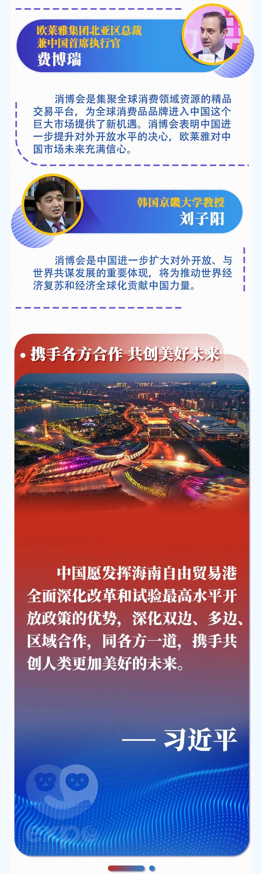 新華社北京5月7日電 首屆中國國際消費品博覽會6日在海南省??谑虚_幕,國家主席習近平致賀信。多國人士表示,舉辦國際消費品博覽會不僅是中國同各國共享發(fā)展機遇的重大舉措,還將對各國加強合作、實現(xiàn)互利共贏產生重要影響