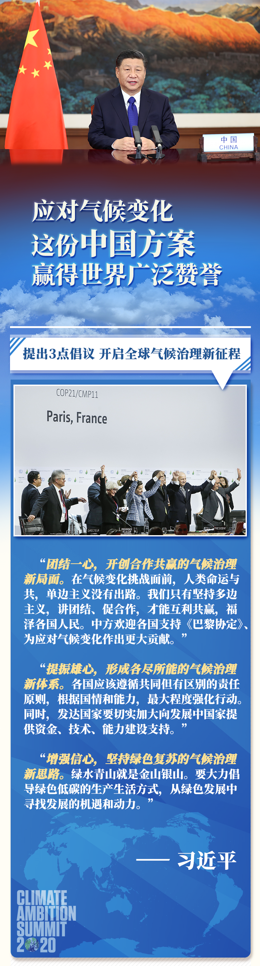 海外各界人士表示,習主席的重要講話為全球氣候治理提振雄心并提供新思路,彰顯中國與世界各國攜手助力《巴黎協(xié)定》行穩(wěn)致遠的決心,展現(xiàn)了中國重信守諾、為全球應對氣候變化作出更大貢獻的大國擔當。
