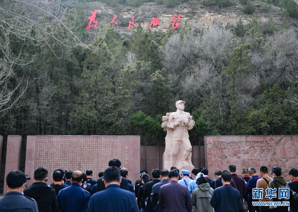 2021年3月29日,參觀者在延安市張思德廣場進(jìn)行現(xiàn)場教學(xué)活動(dòng)。新華社記者 張博文 攝