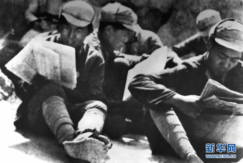 中國人民抗日軍政大學(xué)的學(xué)員在學(xué)習(xí)整風(fēng)文件(資料照片)。新華社發(fā)