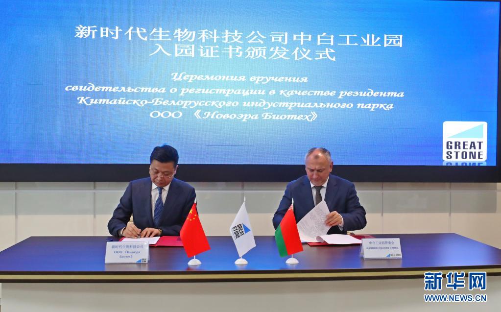 318日,在白俄羅斯首都明斯克郊區(qū)的中白工業(yè)園,工業(yè)園與入駐項(xiàng)目代表簽署入園協(xié)議。新華社發(fā)(任科夫攝)