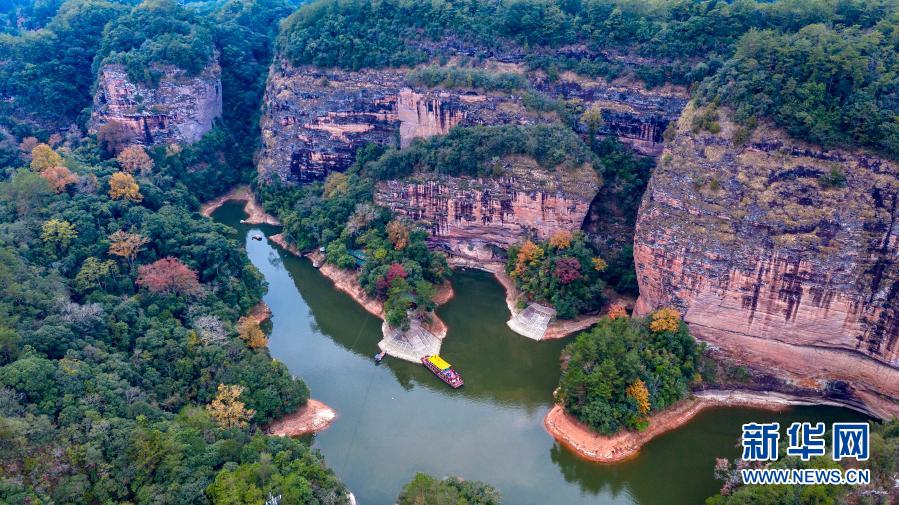 這是129日拍攝的福建省三明市泰寧縣大金湖景區(qū)的水上丹霞景觀(無人機照片)。新華社記者 姜克紅 攝