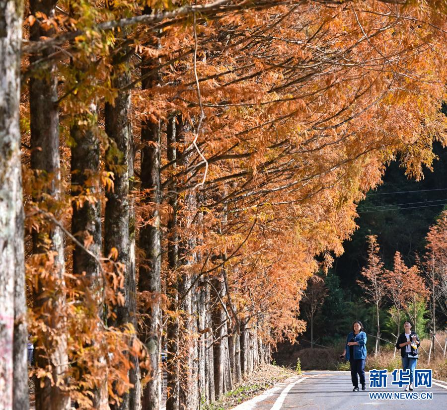 游客在福建省三明市將樂縣龍棲山國家級自然保護區(qū)水杉大道游覽(1120日攝)。新華社記者 宋為偉 攝