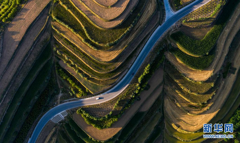這是7月14日在寧夏固原市彭陽(yáng)縣拍攝的青云灣旱作梯田公園(無(wú)人機(jī)照片)。新華社記者 馮開(kāi)華 攝