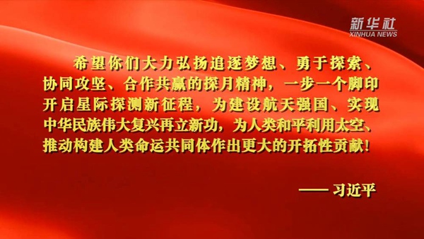 ?? 習近平總書記曾用“追逐夢想、勇于探索、協(xié)同攻堅、合作共贏”這16個字高度概括總結(jié)了“探月精神”,勉勵航天工作者們一步一個腳印開啟星際探測新征程,為建設航天強國、實現(xiàn)中華民族偉大復興再立新功。