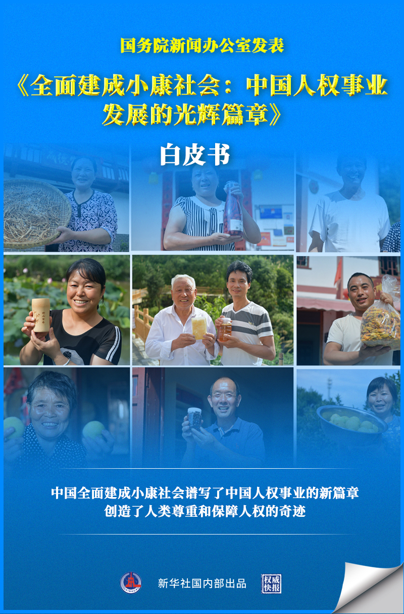國務(wù)院新聞辦公室發(fā)表《全面建成小康社會:中國人權(quán)事業(yè)發(fā)展的光輝篇章》白皮書