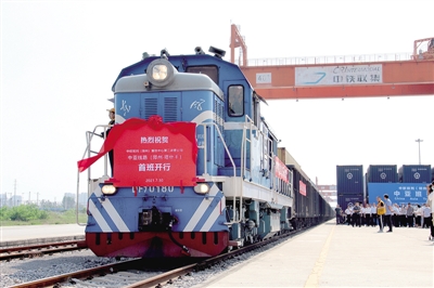 ?? 7月30日,一趟滿載貨物的班列從鄭州圃田站發(fā)車。這是“7·20”暴雨后,繼7月25日鄭歐班列恢復發(fā)車后的首趟中亞班列。 鄭報全媒體記者 王賽華 圖