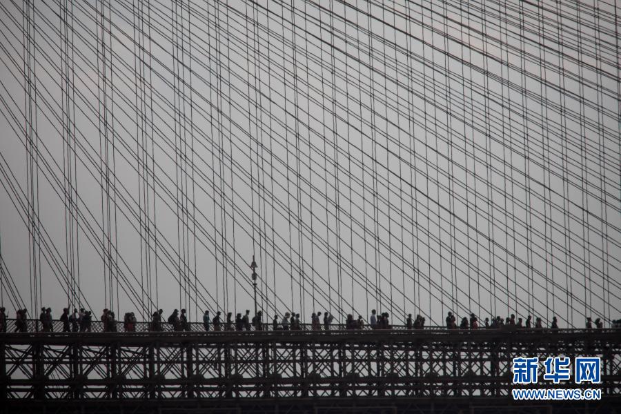 66日,抗議警察暴力執(zhí)法導(dǎo)致喬治·弗洛伊德死亡的示威人群走過美國紐約布魯克林大橋。新華社發(fā)(郭克攝)