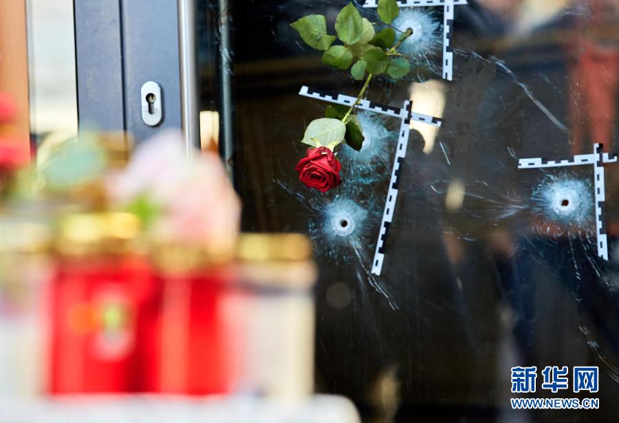 115日,奧地利維也納的槍擊事件現(xiàn)場放置著悼念遇難者的鮮花和蠟燭。2日晚發(fā)生的槍擊事件造成多人傷亡。奧總理庫爾茨譴責(zé)這起事件是卑劣的恐怖襲擊。新華社發(fā)(喬治斯·施耐德攝)