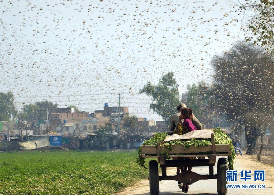 215日,在巴基斯坦東部旁遮普省的奧卡拉地區(qū),漫天的蝗蟲肆虐(手機(jī)照片)。新華社發(fā)