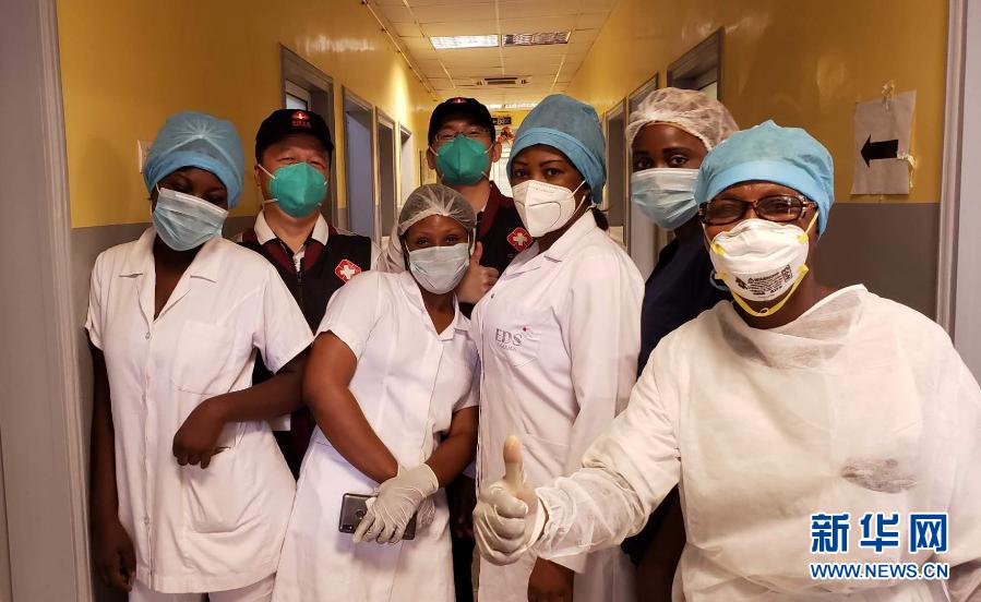 526日,中國抗疫醫(yī)療專家組在剛果(布)首都布拉柴維爾指導(dǎo)新冠肺炎病房建設(shè)時(shí),與當(dāng)?shù)匾痪€醫(yī)務(wù)人員合影。新華社發(fā)