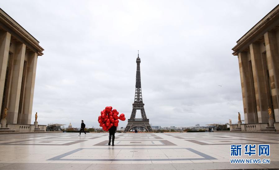 1030日法國再度全國封城,法國巴黎埃菲爾鐵塔附近的特羅卡德羅廣場變得十分空蕩。新華社記者 高靜 攝