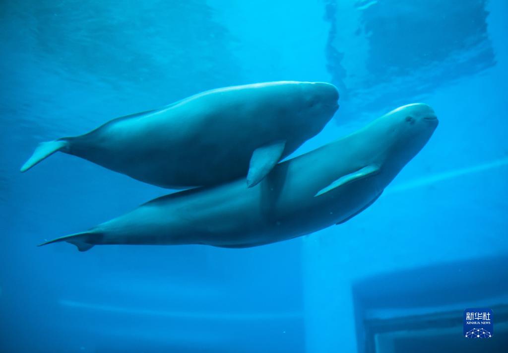 在位于武漢的中國科學(xué)院水生生物研究所,長江江豚媽媽和小江豚在水中游動(dòng)(7月5日攝)。新華社記者 肖藝九 攝