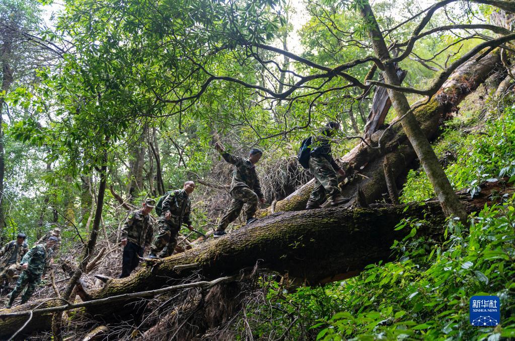 高黎貢山國家級(jí)自然保護(hù)區(qū)瀘水專職巡護(hù)隊(duì)在山間巡護(hù)(3月12日攝)。新華社記者 陳欣波 攝