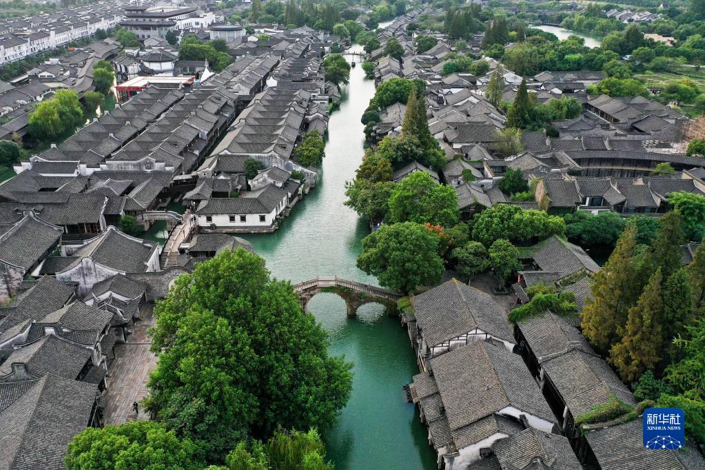 9月25日拍攝的烏鎮(zhèn)西柵景區(qū)(無(wú)人機(jī)照片)。新華社記者 黃宗治 攝