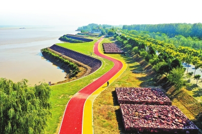 深秋時(shí)節(jié),航拍的開封黃河生態(tài)廊道一景。牛書培 攝
