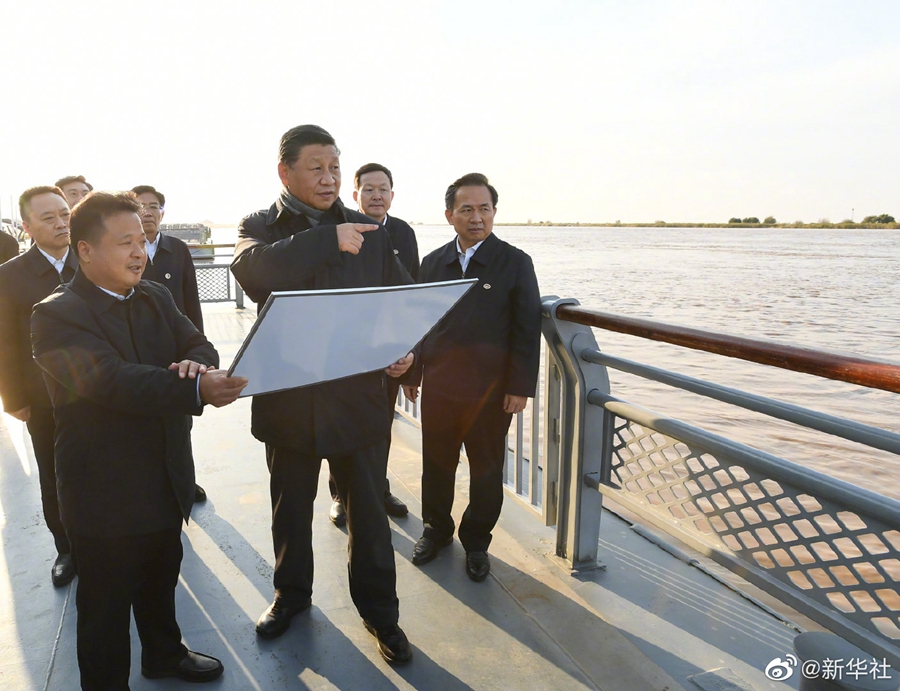 習(xí)近平總書記20日在山東省東營(yíng)市考察黃河入???。當(dāng)天下午,他來到黃河入海口碼頭、黃河三角洲生態(tài)監(jiān)測(cè)中心、黃河三角洲國(guó)家級(jí)自然保護(hù)區(qū),實(shí)地察看黃河河道水情和黃河三角洲濕地生態(tài)環(huán)境,了解黃河流域生態(tài)保護(hù)和高質(zhì)量發(fā)展等情況。(文字記者:張曉松、朱基釵;攝影記者:李學(xué)仁、謝環(huán)馳、王曄)