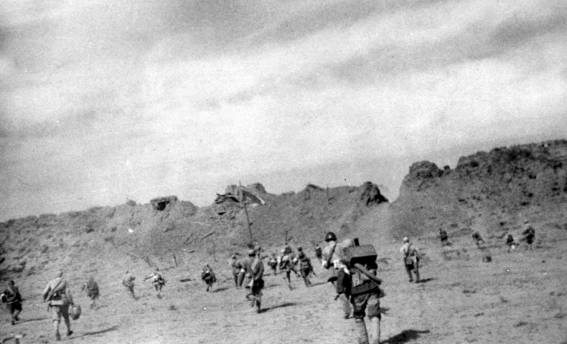 新華社沈陽1949年1月16日電《英雄的十月》,記錄了遼沈戰(zhàn)役戰(zhàn)場戰(zhàn)士們“地堡被轟坍了,轉(zhuǎn)到壕溝里打;壕溝被轟平了,跳進(jìn)彈坑打;子彈打光了用手榴彈打;手榴彈打光了用石頭打”。