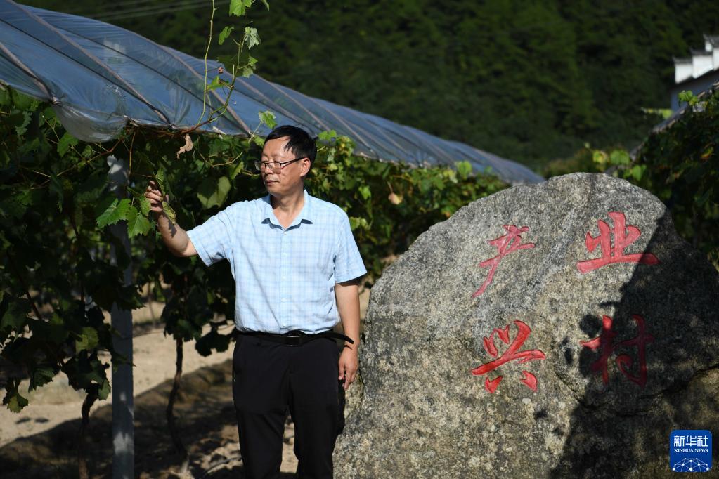 9月14日,李興國(guó)在安徽省安慶市岳西縣五河鎮(zhèn)河南村走訪一處農(nóng)業(yè)產(chǎn)業(yè)園。新華社記者 張端 攝