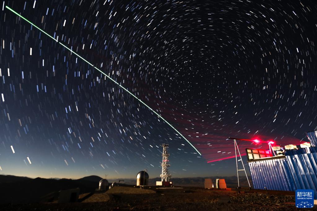 2016年12月9日,“墨子號”量子科學(xué)實(shí)驗(yàn)衛(wèi)星與阿里量子隱形傳態(tài)實(shí)驗(yàn)平臺(tái)建立天地鏈路(合成照片)。新華社記者 金立旺 攝