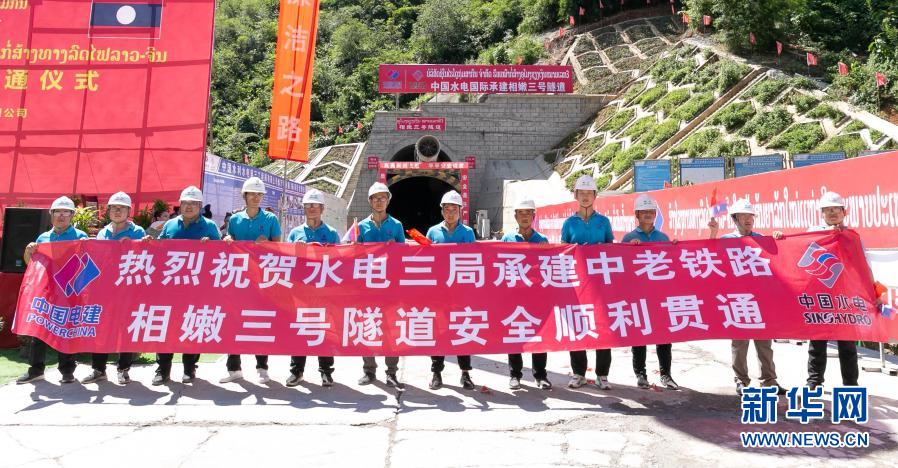 這是9月29日在老撾北部瑯勃拉邦省拍攝的相嫩三號(hào)隧道貫通儀式現(xiàn)場。新華社發(fā)(凱喬攝)