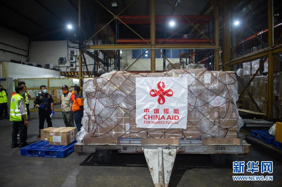 3 月 26 日,中國援助印度尼西亞的首批抗疫物資停放在雅加達(dá)蘇加諾哈達(dá)機(jī)場倉庫。新華社記者 杜宇 攝