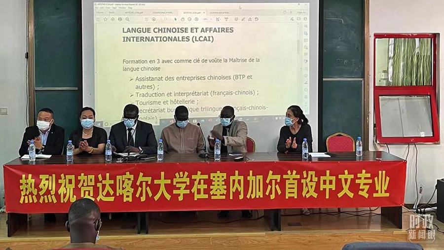 △2021年11月23日,塞內(nèi)加爾達(dá)喀爾大學(xué)在孔子學(xué)院舉行了中文專業(yè)推介暨新聞發(fā)布會(huì),這標(biāo)志著中文教育正式進(jìn)入塞內(nèi)加爾高等教育體系。(總臺(tái)記者韓蓄拍攝)