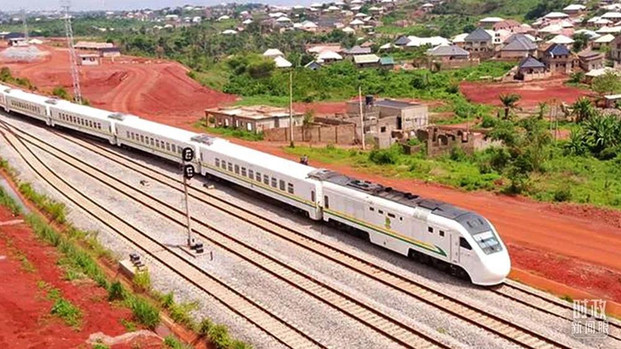 △2021年6月,由中企承建的尼日利亞拉伊鐵路正式通車運(yùn)營(yíng)。這是列車穿過(guò)當(dāng)?shù)鼐用裆鐓^(qū)。(資料圖)