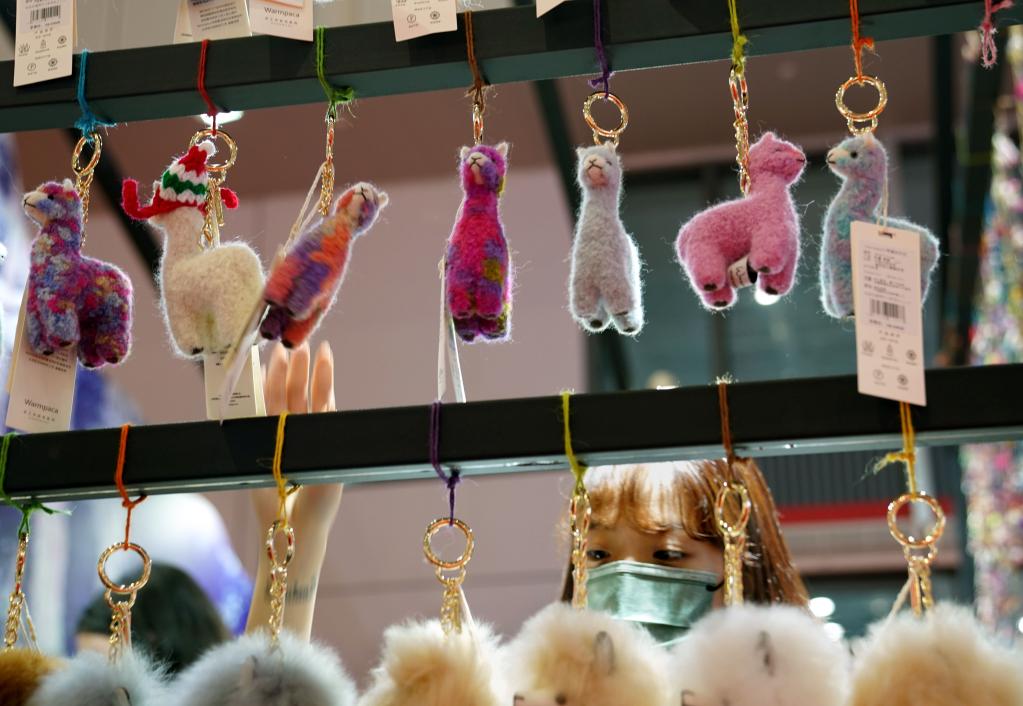 2021年11月7日,第四屆中國國際進(jìn)口博覽會上,用秘魯羊駝毛制作的掛件廣受歡迎。