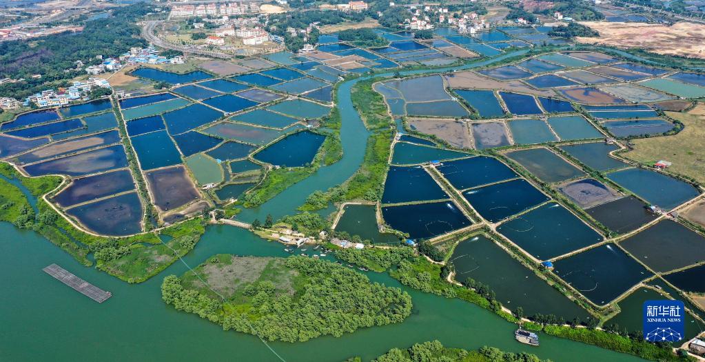 這是廣西欽州市欽南區(qū)沙埠鎮(zhèn)船埠環(huán)村的冬日蝦塘景色(11月25日攝,無(wú)人機(jī)照片)。新華社記者 張愛(ài)林 攝