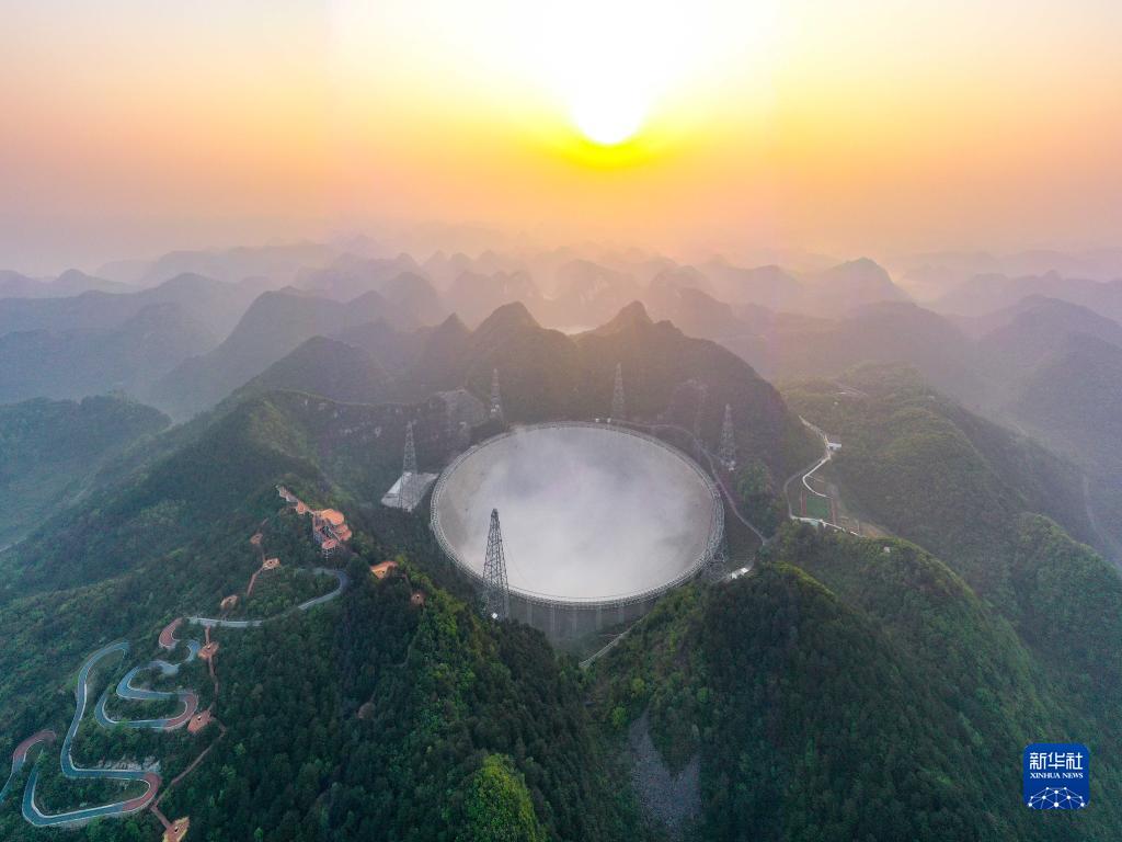 3月31日清晨拍攝的“中國(guó)天眼”全景(維護(hù)保養(yǎng)期間拍攝,無(wú)人機(jī)照片)。新華社記者 歐東衢 攝
