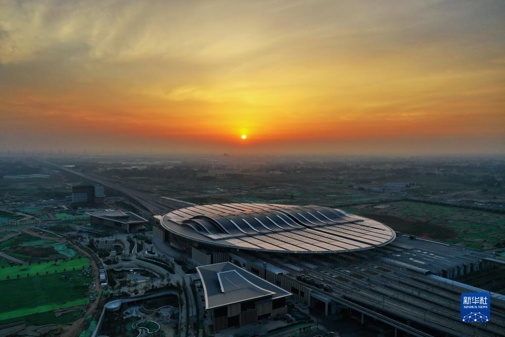 這是京雄城際鐵路雄安站(7月1日攝,無(wú)人機(jī)照片)。新華社記者 牟宇 攝