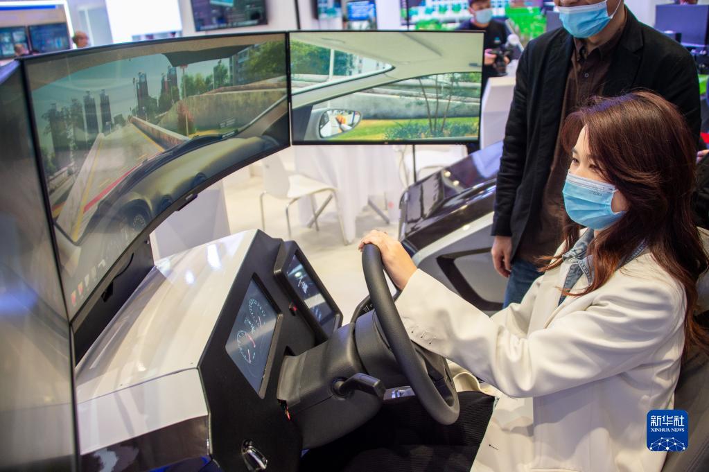 11月19日至21日,2021中國(guó)5G+工業(yè)互聯(lián)網(wǎng)大會(huì)在位于武漢的中國(guó)光谷科技會(huì)展中心舉行。這是 11月19日,參觀者在“5G+工業(yè)互聯(lián)網(wǎng)成果展”上體驗(yàn)駕駛智能模擬器。新華社發(fā)(伍志尊 攝)