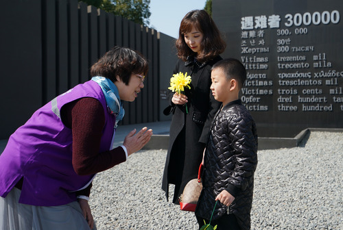 從2008年開始,來自美國、法國、韓國、日本等國的志愿者來到紀(jì)念館,用英語、法語、韓語、日語等向來自世界各地的參觀者講述南京大屠殺歷史,并在紀(jì)念館史學(xué)研究、文史資料翻譯、國際交流活動(dòng)中發(fā)揮專長。