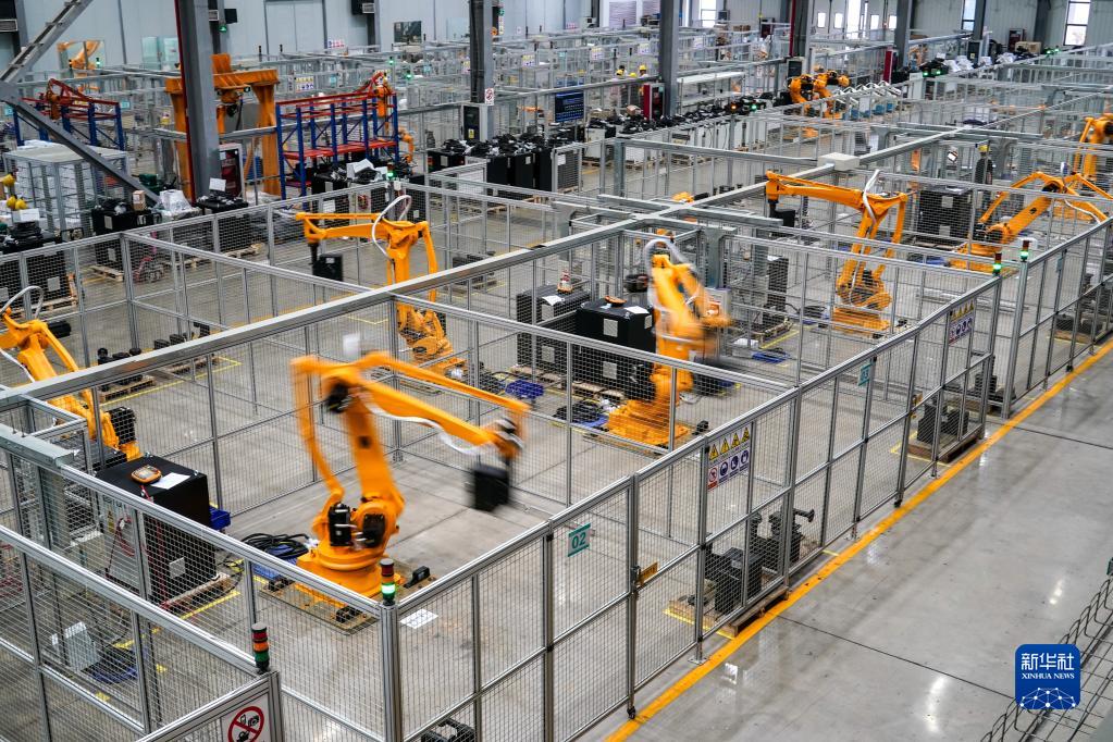 7月1日,在位于江蘇省南京市江寧區(qū)的南京埃斯頓自動(dòng)化股份有限公司工業(yè)機(jī)器人生產(chǎn)車(chē)間,工業(yè)機(jī)器人在進(jìn)行跑合測(cè)試。新華社記者 李博 攝