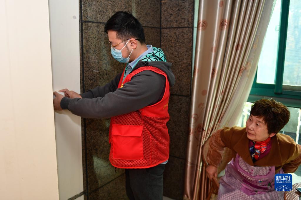 智慧養(yǎng)老綜合服務平臺的工作人員(左)在浙江省湖州市吳興區(qū)愛山街道龍庭小區(qū)一位居民家中安裝“一鍵幫助”服務設備(2021年11月17日攝)?!耙绘I幫助”服務是愛山街道數(shù)字化居家養(yǎng)老服務項目之一。老人需要幫助時輕輕按下,智慧養(yǎng)老綜合服務平臺的工作人員就能第一時間獲取信息,聯(lián)系老人了解其需求,提供相應服務。目前,愛山街道70周歲以上老人已實現(xiàn)“一鍵幫助”系統(tǒng)全覆蓋。新華社記者 黃宗治 攝
