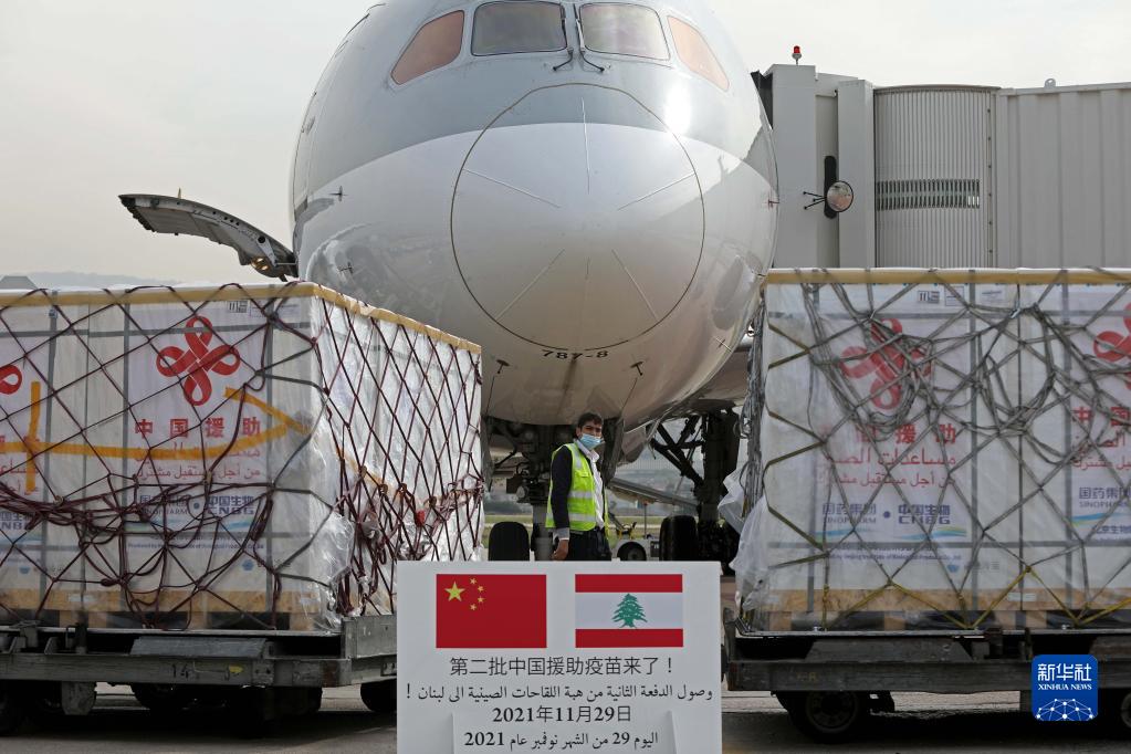 2021年11月29日,中國援助黎巴嫩第二批新冠疫苗運(yùn)抵貝魯特拉菲克·哈里里國際機(jī)場。新華社發(fā)(比拉爾·賈維希 攝)