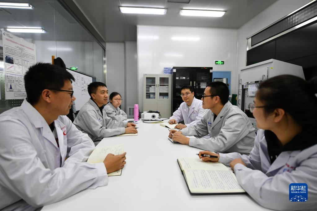 2月7日,科研人員在中國科學(xué)院國家授時中心空間鍶原子光鐘實驗室討論項目進(jìn)度。新華社記者 張博文 攝