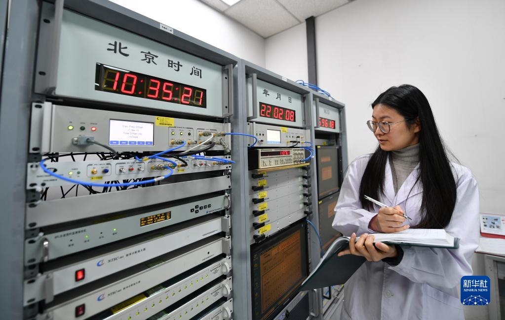 2月8日,科研人員在中國科學(xué)院國家授時中心時間頻率基準(zhǔn)實驗室記錄數(shù)據(jù)。新華社記者 張博文 攝