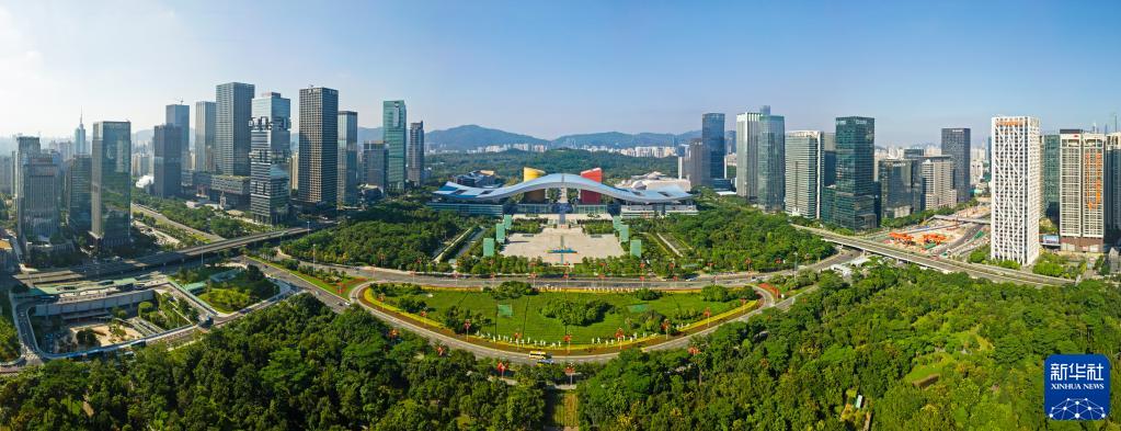 這是深圳市民中心和蓮花山公園一線(2020年10月2日攝,無人機照片)。新華社記者 梁旭 攝