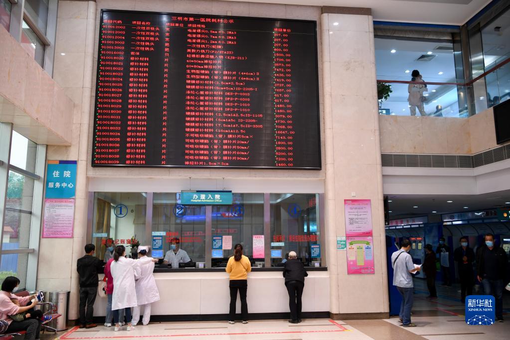 福建省三明市第一醫(yī)院的醫(yī)保辦工作人員(右)向前來咨詢藥品報(bào)銷問題的居民講解相關(guān)政策(2020年11月18日攝)。新華社記者 姜克紅 攝
