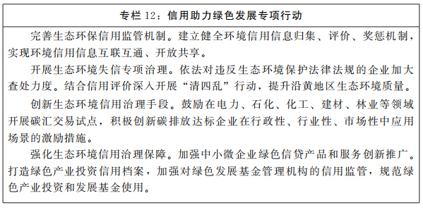 加強(qiáng)生態(tài)環(huán)境領(lǐng)域信用建設(shè),開展生態(tài)環(huán)境失信專項(xiàng)治理,創(chuàng)新生態(tài)環(huán)境失信治理措施。強(qiáng)化沿黃生態(tài)、淮河生態(tài)、大別山等生態(tài)環(huán)境圈信用治理保障,結(jié)合公共信用評(píng)價(jià)和行業(yè)信用評(píng)價(jià),制定沿黃、淮河、大別山等地區(qū)產(chǎn)業(yè)準(zhǔn)入負(fù)面清單,推動(dòng)高耗水、高污染、高耗能產(chǎn)業(yè)布局優(yōu)化和結(jié)構(gòu)調(diào)整。