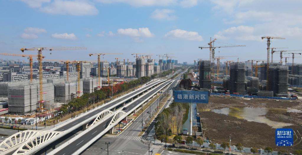 2月10日在中國(上海)自由貿(mào)易試驗區(qū)臨港新片區(qū)拍攝的住宅區(qū)建設(shè)現(xiàn)場(無人機照片)。新華社記者 方喆 攝