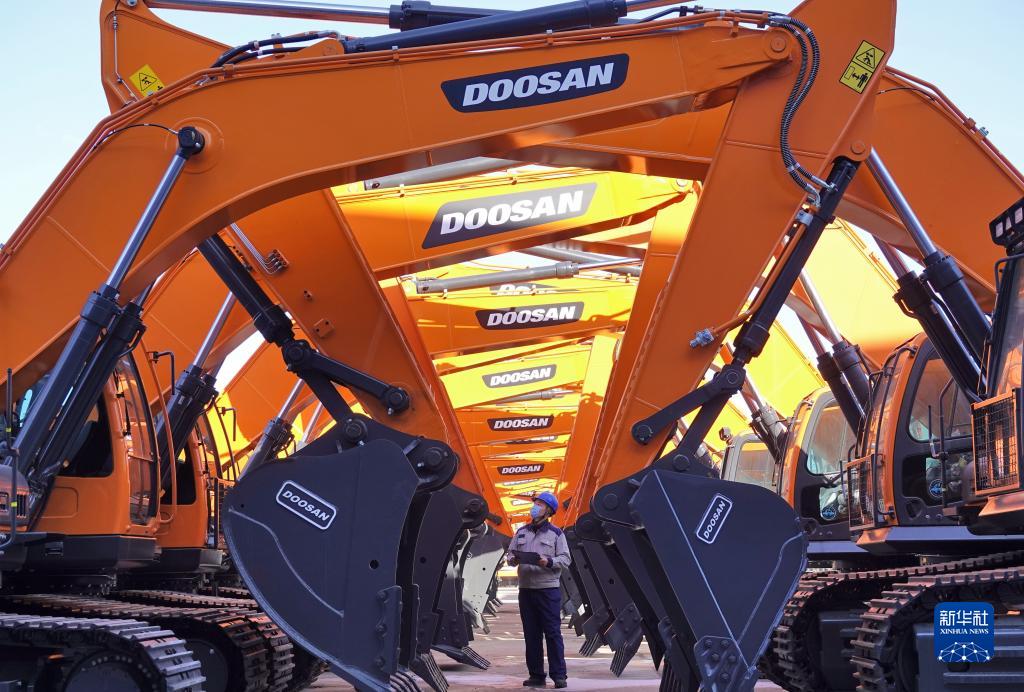 工作人員在山東煙臺開發(fā)區(qū)一家工程機械有限公司檢查出廠機械設(shè)備(1月17日攝)。新華社發(fā)(唐克 攝)