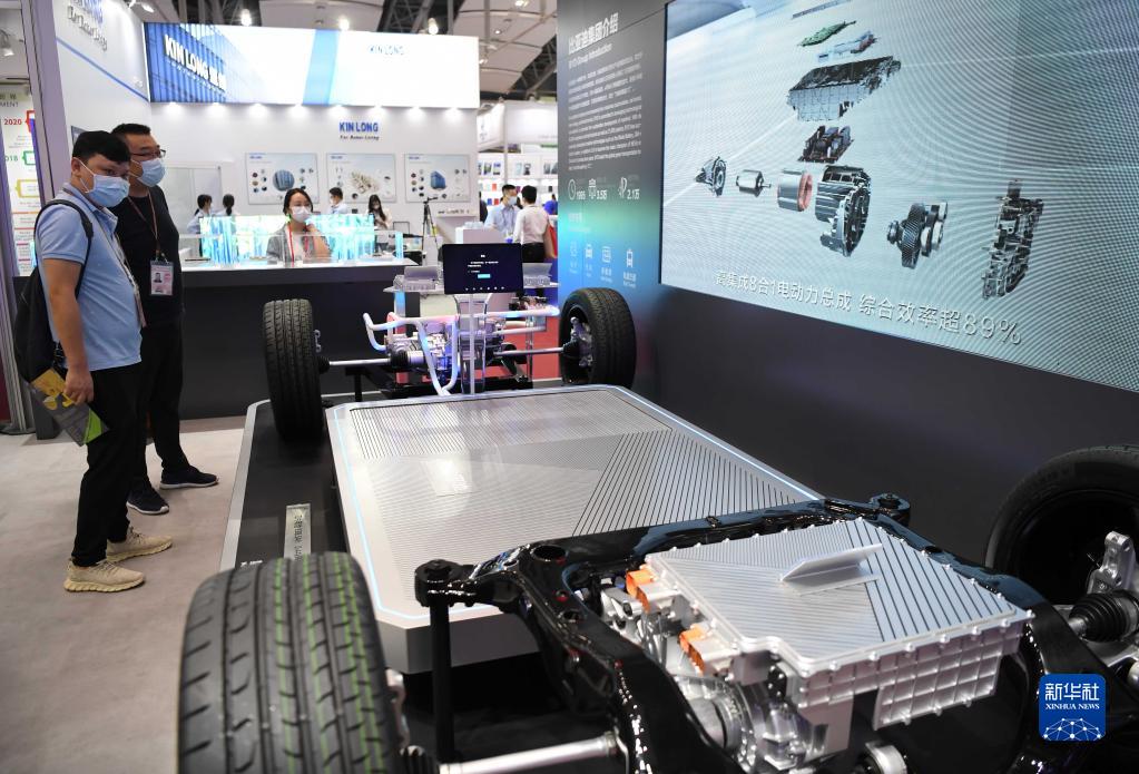 這是在第130屆廣交會上拍攝的比亞迪刀片電池展臺(2021年10月15日攝)。新華社記者 鄧華 攝