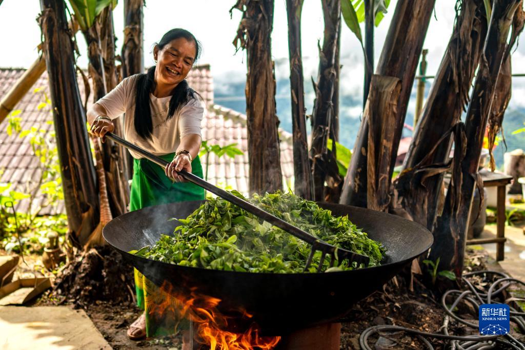 云南省滄源縣班洪鄉(xiāng)班洪村村民在炒茶(2021年8月20日攝)。新華社記者 江文耀 攝