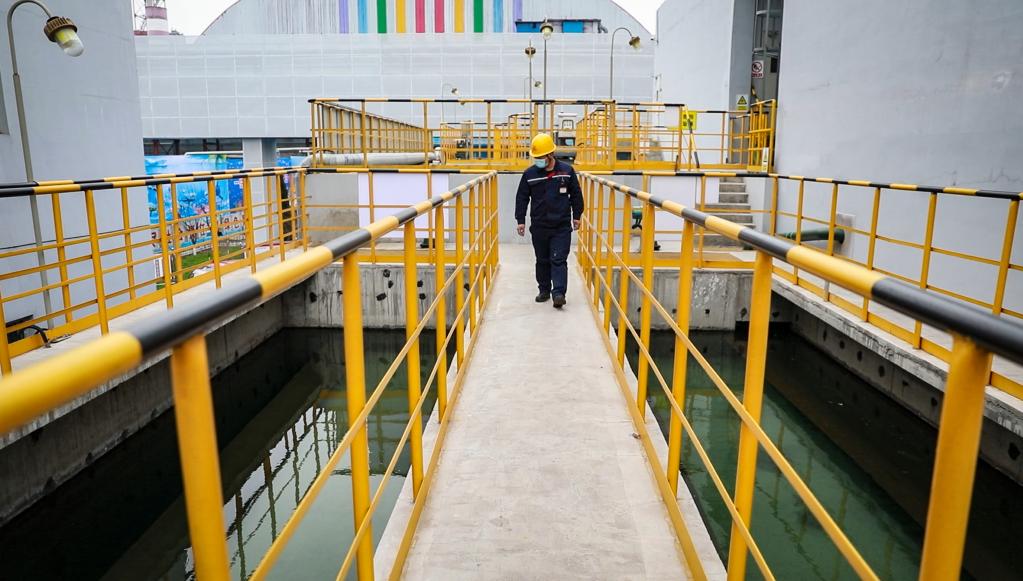3月19日,工人在德龍鋼鐵公司水處理中心巡查。這里的生產(chǎn)廢水和生活污水經(jīng)處理后可循環(huán)使用,實現(xiàn)污廢水“零排放”。(陳雷攝)